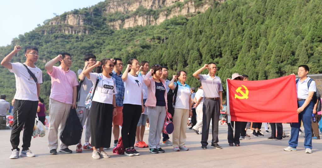 7月1日,高永芳带领全体党员面对党旗,在五勇士塑像前重温了入党誓词,随后在五勇士塑像前合影留念。全体人员实地参观学习了狼牙山五勇士的英雄事迹。