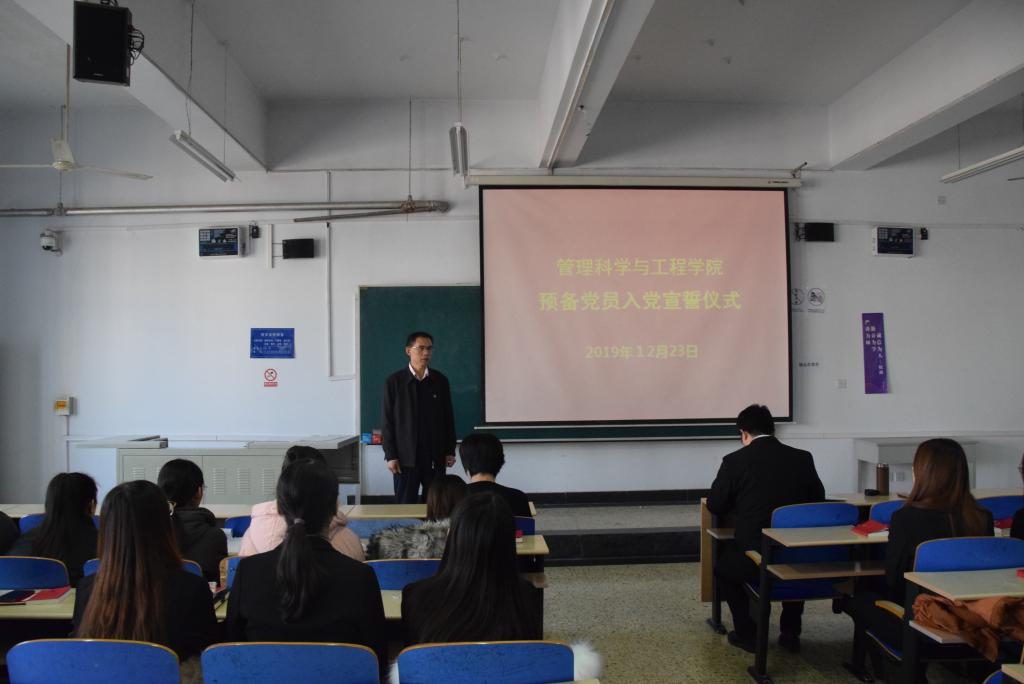 12月23日,公司在A501教室举行预备党员入党宣誓仪式。仪式由公司党务办公室负责人宋智广主持,公司党委书记高永芳出席,公司第一员工党支部书记李淑菊、第二员工党支部书记王芳和全体预备党员参加。