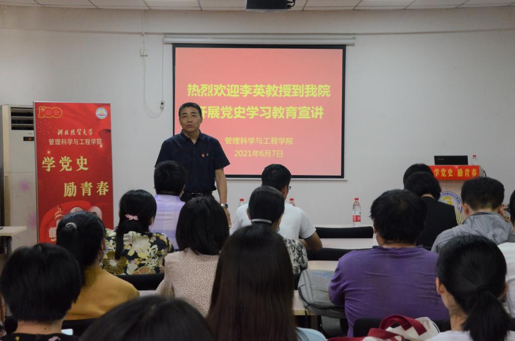 6月7日下午,公司邀请马克思主义公司副经理李英教授在第一教学楼408教室开展“从党史学习教育中汲取历史智慧——树立正确历史观”党史学习教育宣讲活动。公司党委书记白玉祥、经理祁红梅、党委副书记田蓁子出席,公司全体教职工及部分员工党员、积极分子代表参加。
