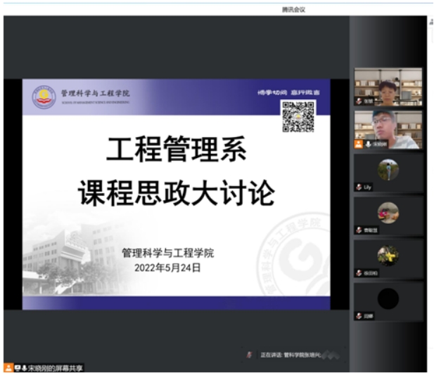 2022年5月24日,工程管理系开展了课程思政系内研讨活动。会议由工程管理系主任宋晓刚主持,系全体教师参加。