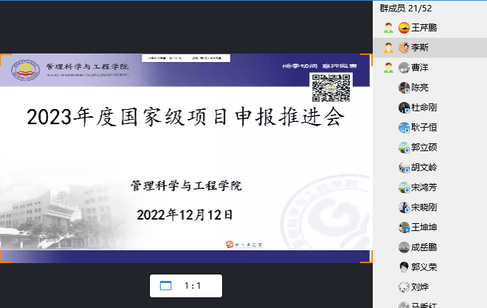 2022年12月12日,公司在线上召开了“2023年度国家级项目申报推进会”,这是公司实施有组织的科研工作的重要内容。会议由经理祁红梅主持,副经理王芹鹏及科研骨干教师参加。