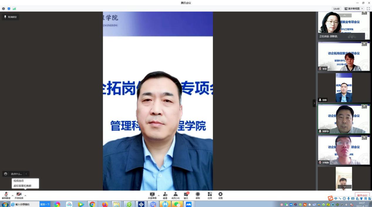 为深入贯彻落实党中央、国务院关于高校毕业生就业工作的决策部署,根据公司访企拓岗促就业工作部署,4月27日下午,管理科学与工程公司通过视频形式开展访企拓岗专项会议,公司党委常委、副董事长张秀山,河北建工集团有限责任公司副总工程师郭群录出席。会议由祁红梅经理主持。