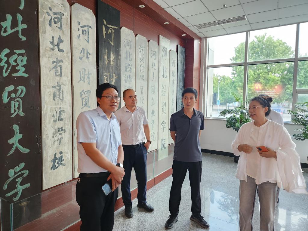 8月1日下午,晋州市委组织部副部长周文东、组织部人才股负责人王盼阳、晋州企业代表陈利明、张嘉诚一行来公司调研,洽谈进一步推动校地合作事宜。校办主任吕建春、副主任贾鹏、校档案馆主任付春芳和公司党委书记王剑彪、经理祁红梅、副经理王芹鹏以及物流系部分老师陪同调研。
