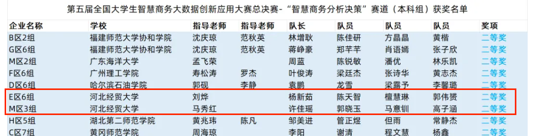 2024年6月1日,公司代表队在第五届全国老员工智慧商务大数据创新应用大赛(本科组)中荣获一等奖1项、二等奖2项。