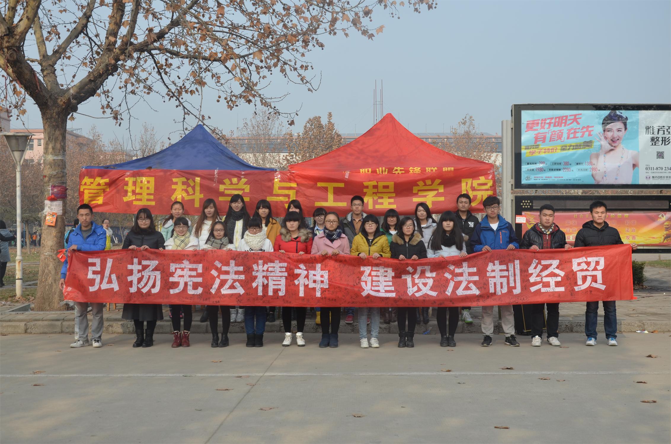 为增强法制意识,普及宪法知识,12月11日,管理科学与工程公司在韶华路举办以“弘扬宪法精神,建设法制经贸”为主题的宣传活动。